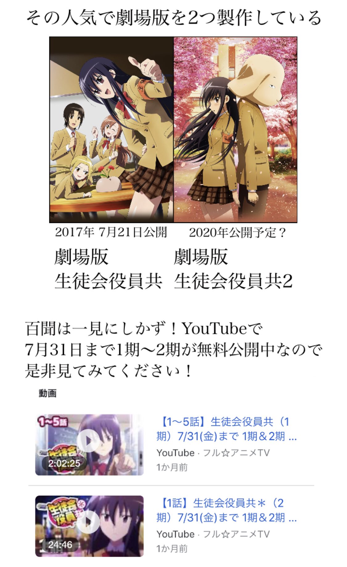 アニメ映画 生徒会役員共のフル動画を無料視聴できる方法まとめ アニカル部 アニメ動画の無料視聴まとめ