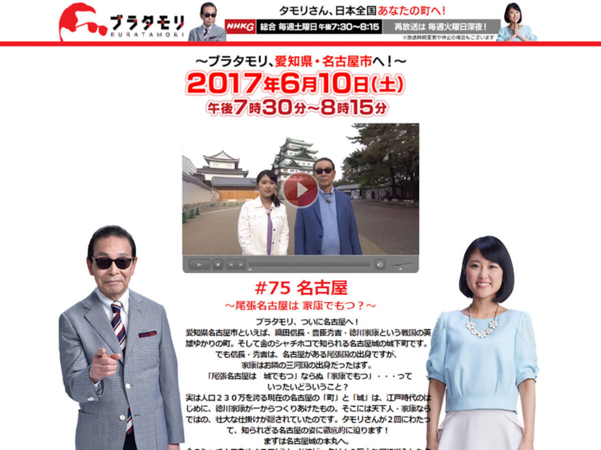 ブラタモリ in 名古屋第1弾「名古屋編」、第3弾「ものづくり編」もお楽しみください。 前回からのおさらい 家康が名古屋を経済という基盤で発展させるため、どうしても取り込みたいと思った場所とは ブラタモリ見逃し動画配信のご紹介 ブラタモリを見逃した場合、 不定期ですが火曜日の深夜に再放送がありました。 しかし再放送は21年4月の 番組改変で廃止されました。When the autocomplete results are available, use the up and down arrows to review and Enter to select Touch device users can explore by touch or with swipe gestures